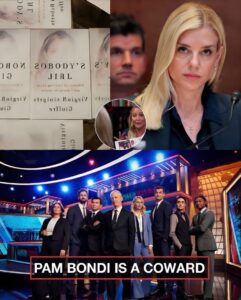 In this entirely fictional story, seven powerful hosts stood in a long row, their cold, razor-sharp gazes fixed on one single name — Pam Bondi, whom they viewed as “a coward who avoids the truth,” a character constructed in a fictional context to create dramatic tension.