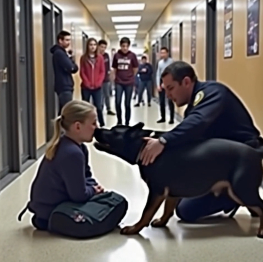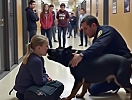 In the bustling halls of Maplewood High School, the students carried on with their daily routines, oblivious to the extraordinary event about to unfold. The school, known for its academic excellence and vibrant student life, was hosting a safety demonstration by the local police department. The highlight of the event was Rex, a highly trained K9 dog renowned for his impeccable obedience and sharp instincts.